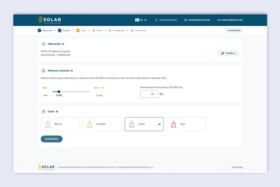 La Calculadora Solar de MSM te ayuda a elegir de manera rápida, sencilla y fiable la linterna que mejor se adapta a tu proyecto de Ayudas a la Navegación. Una guía de pocos pasos para descubrir la solución lumínica ideal en localizaciones sin red eléctrica.