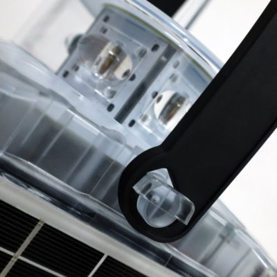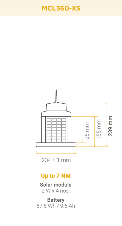 The MCL360-XS LED compact lantern has been designed to deliver maximum energy efficiency in a compact housing. Its configuration of solar panels on all four sides, combined with a low-consumption optimized battery, ensures reliable operation even in environments with limited solar radiation. This makes it an ideal solution for fixed and floating solar installations requiring uninterrupted service under demanding conditions, without the need for high luminous ranges.