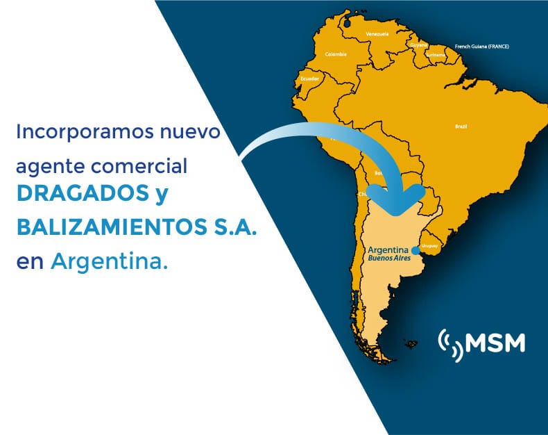 Desde MSM tenemos el placer de comunicarles que hemos formalizado un nuevo acuerdo de colaboración por el cual Dragados y Balizamientos S.A. ejercerá de agente comercial de MSM para la distribución de nuestros productos de señalización marítima en Argentina.
